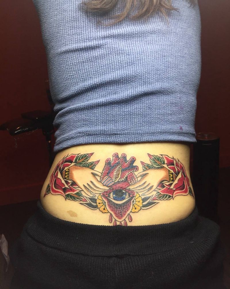 old school纹身图片_腰部Old School心脏和花纹身图案