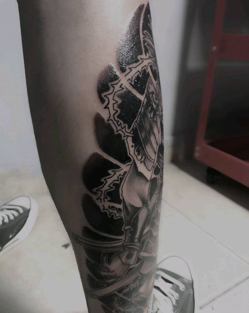 • T网红王老大花腿龙纹身图片_腿部新传统纹身图案