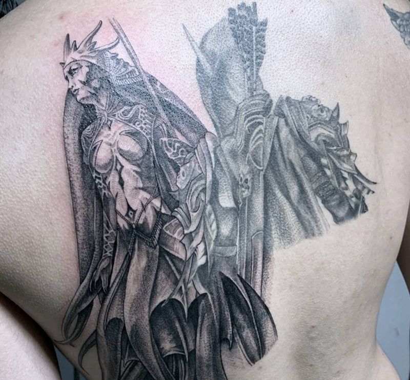 • 纹身吧推荐的披肩图腾半胛纹身图案作品展示