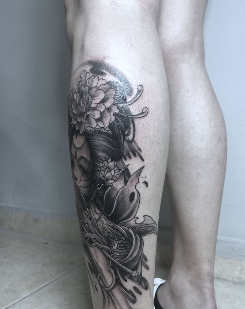 • T网红王老大花腿龙纹身图片_腿部新传统纹身图案