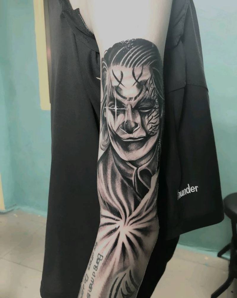 原创暗黑小丑纹身图片_手臂欧美写实小丑纹身图案