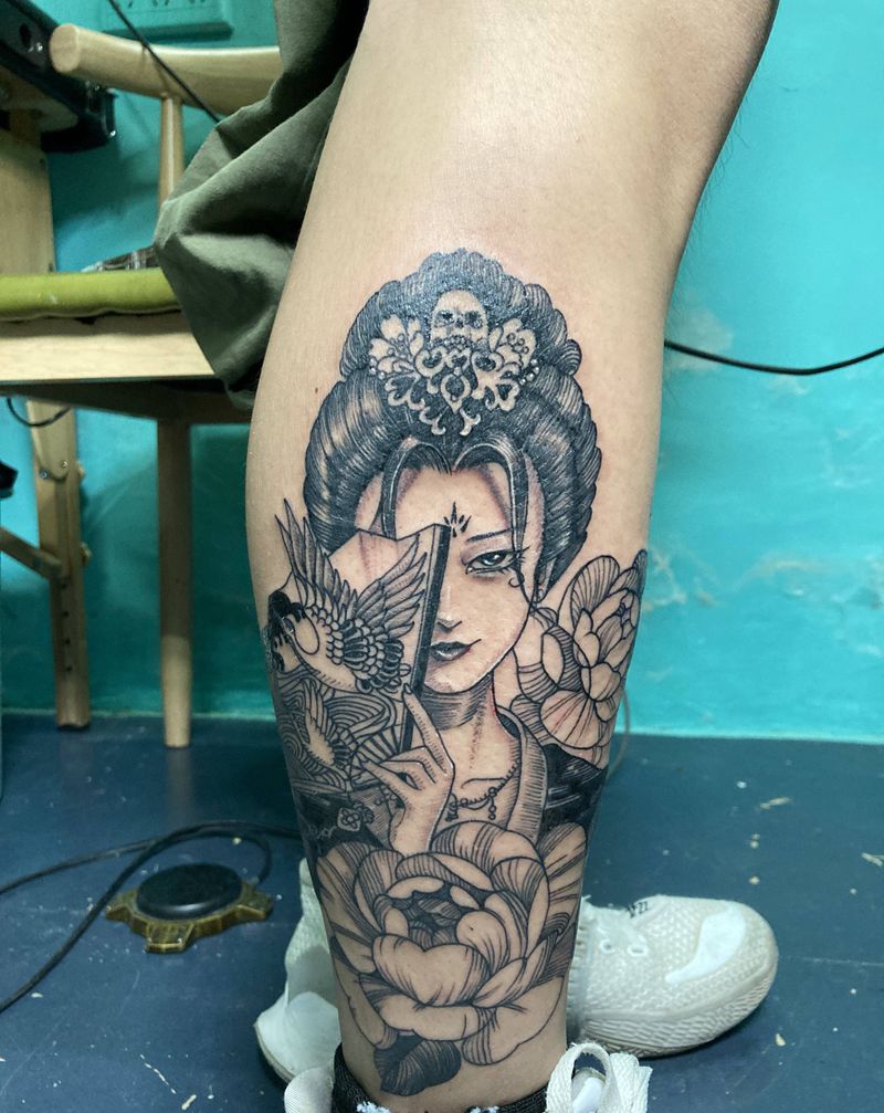 艺妓纹身图片_脚部腿部新传统纹身图案