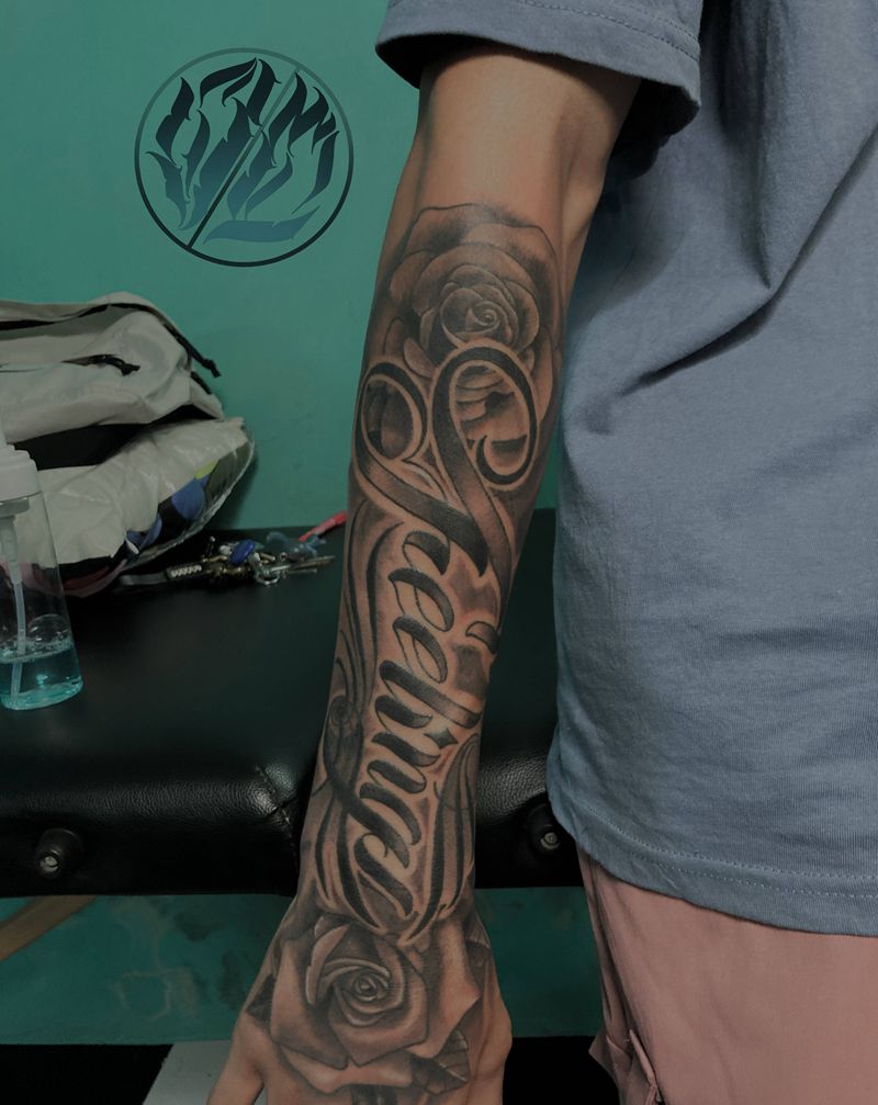 原创图纹身图片_手部手臂欧美写实花体字纹身图案