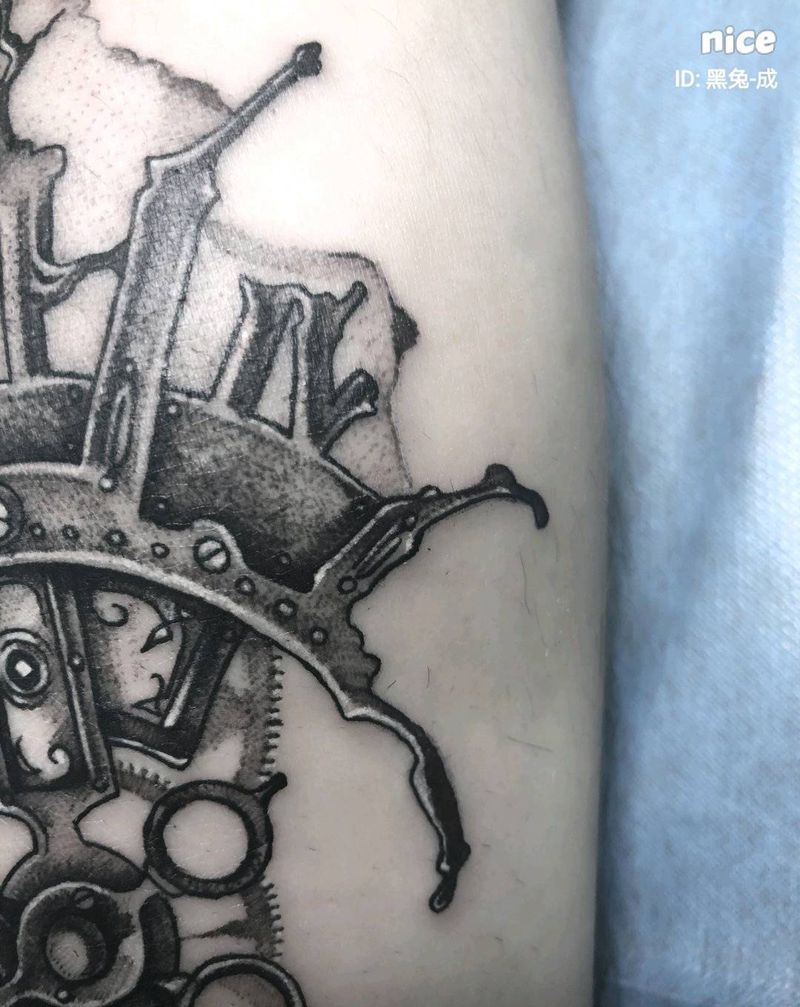 当前位置: 首页 >广东省肇庆市纹身店-日福刺青纹身图案>蒸汽朋克风纹身图片_腿部欧美写实点刺蒸汽朋克纹身图案