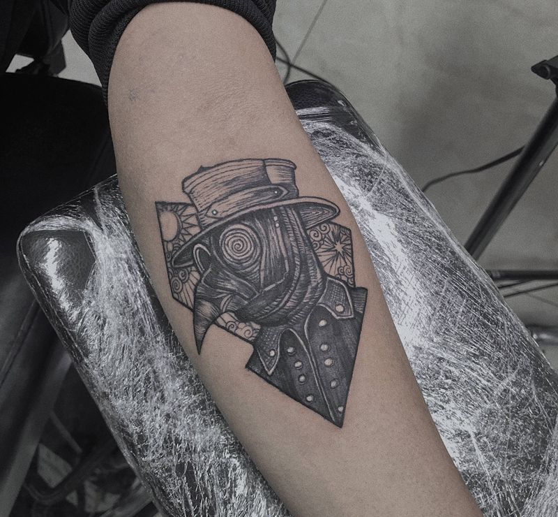 鸟嘴医生纹身图片_手臂欧美写实纹身图案