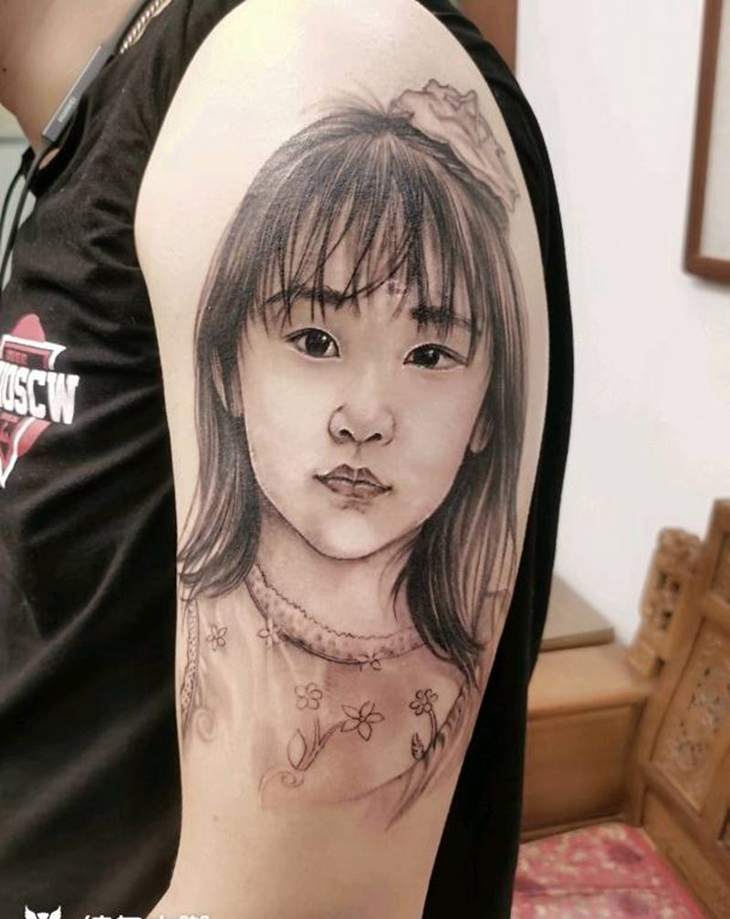 当前位置: 首页 >广东省惠州市纹身店-针谛刺青纹身图案>相片纹身纹身图片_肩部手臂欧美写实纹身图案