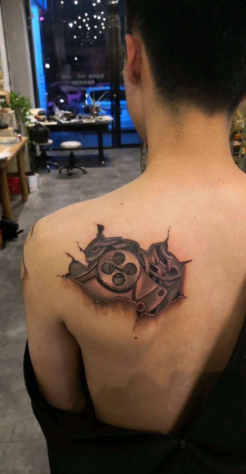 当前位置: 首页 >广东省惠州市纹身店-针谛刺青纹身图案>机械纹身图片_胸部背部欧美写实纹身图案
