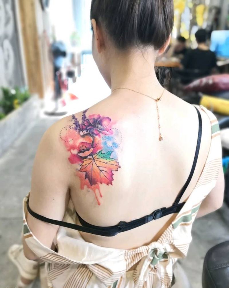 覆盖纹身纹身图片_肩部水彩几何纹身图案