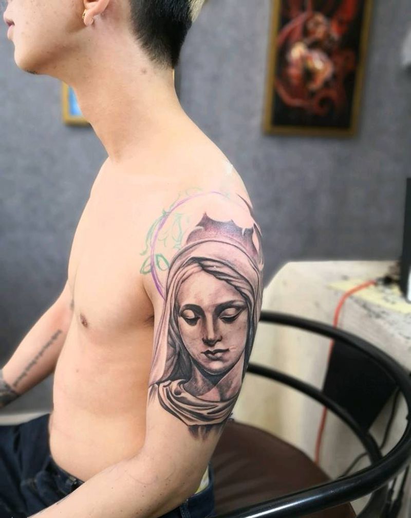 • 纹身吧推荐的披肩图腾半胛纹身图案作品展示