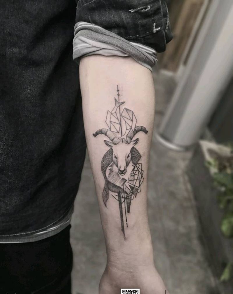 小羊头纹身图片_手臂点刺几何纹身图案