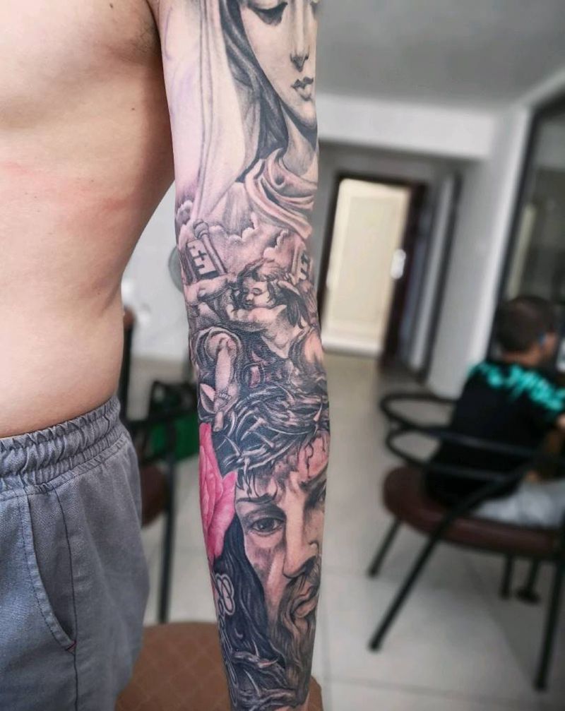 当前位置: 首页 >广东省惠州市纹身店-针谛刺青纹身图案>信仰纹身图片_手臂欧美写实故事纹身图案