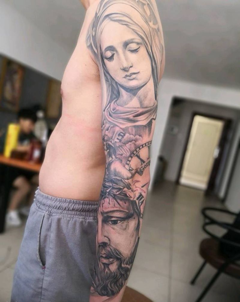 信仰纹身图片_手臂欧美写实故事纹身图案