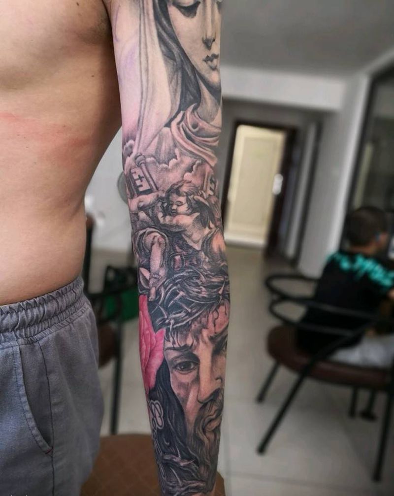 信仰纹身图片_手臂欧美写实故事纹身图案