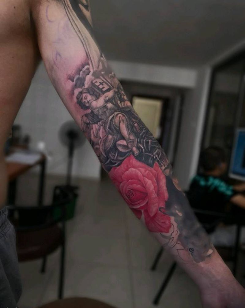 信仰纹身图片_手臂欧美写实故事纹身图案