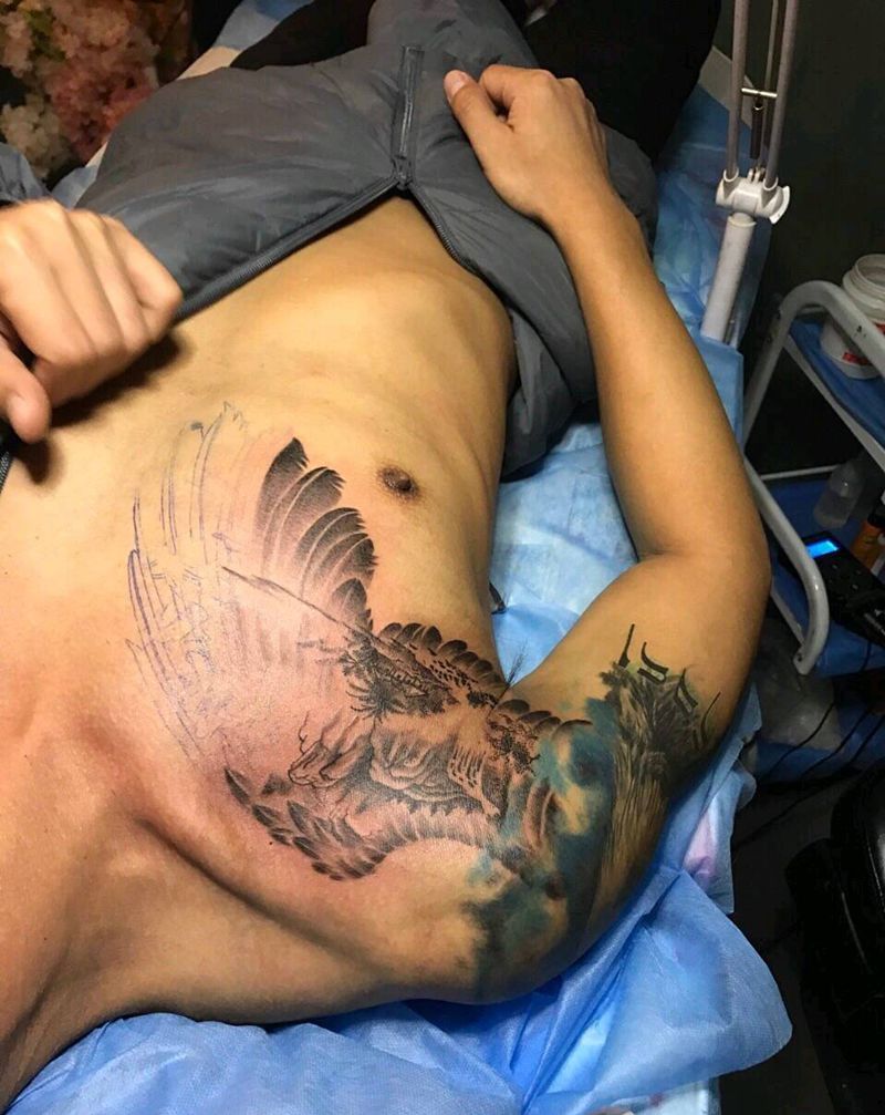 爱江山纹身图片_胸部国画原创成品纹身图案