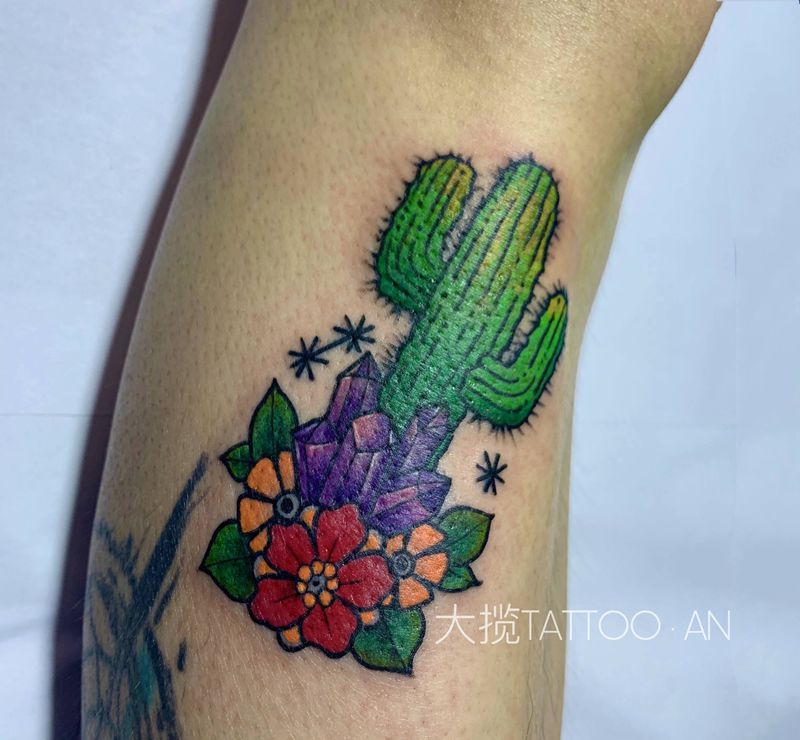 仙人掌纹身图片_腿部New School纹身图案