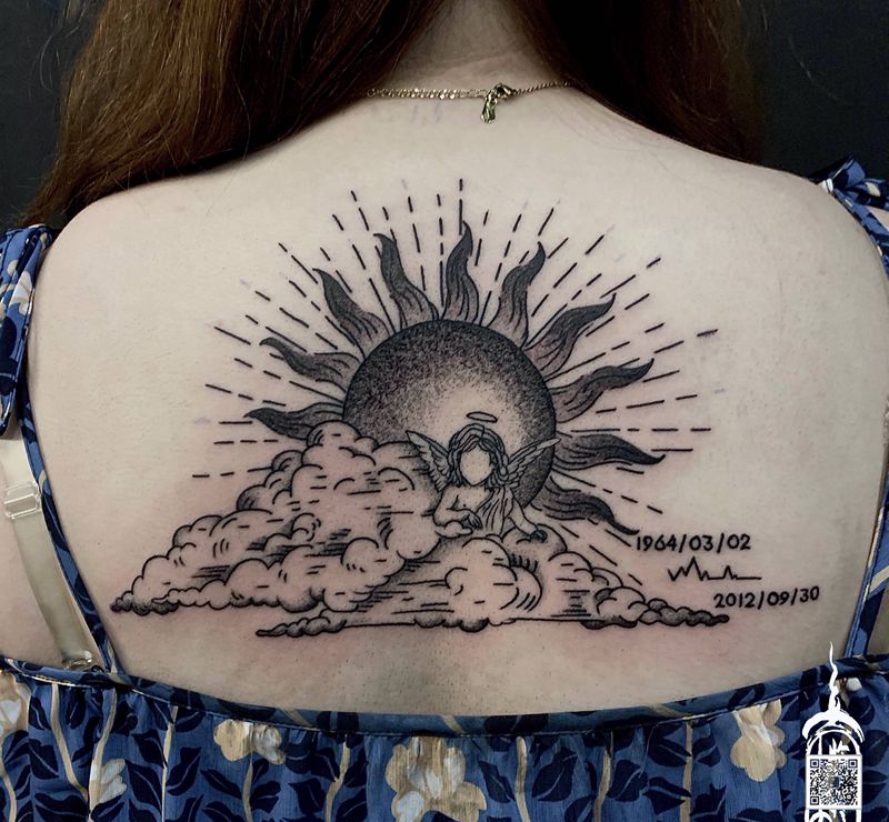 天使纹身图片_背部纹身图案