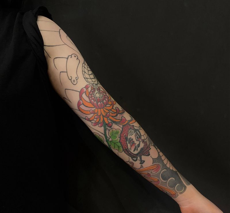 当前位置: 首页 >广东省惠州市纹身店-大揽刺青纹身图案>传统花臂上色-未完待续纹身图片_手臂新传统纹身图案