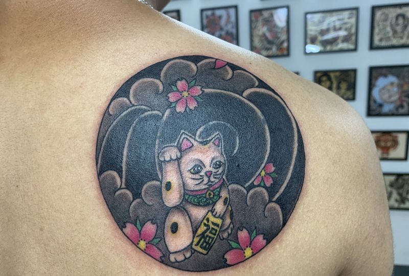 • T招财猫纹身图片
