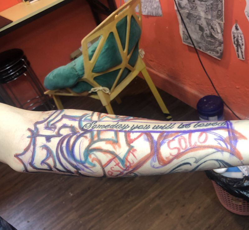 当前位置: 首页 >广东省肇庆市纹身店-黑兔刺青纹身馆纹身图案>现场创作纹身图片_手部花体字纹身图案