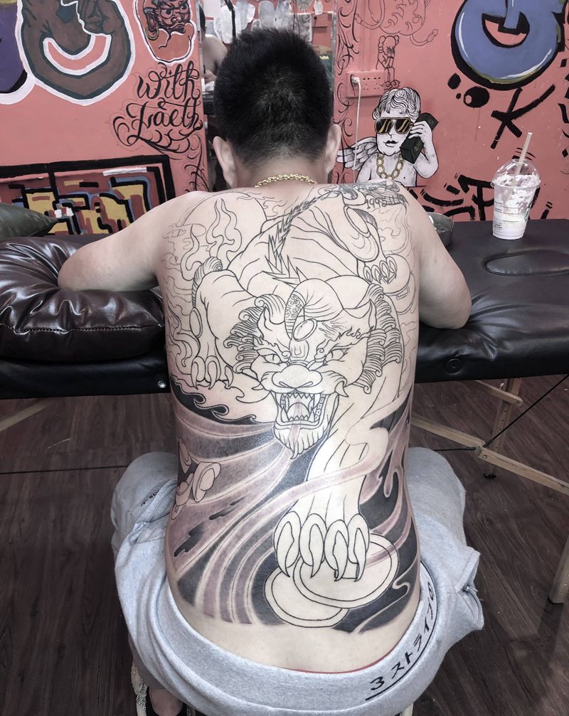 当前位置: 首页 >广东省肇庆市纹身店-黑兔刺青纹身馆纹身图案>经历5次,完成80%纹身图片_背部新传统纹身图案