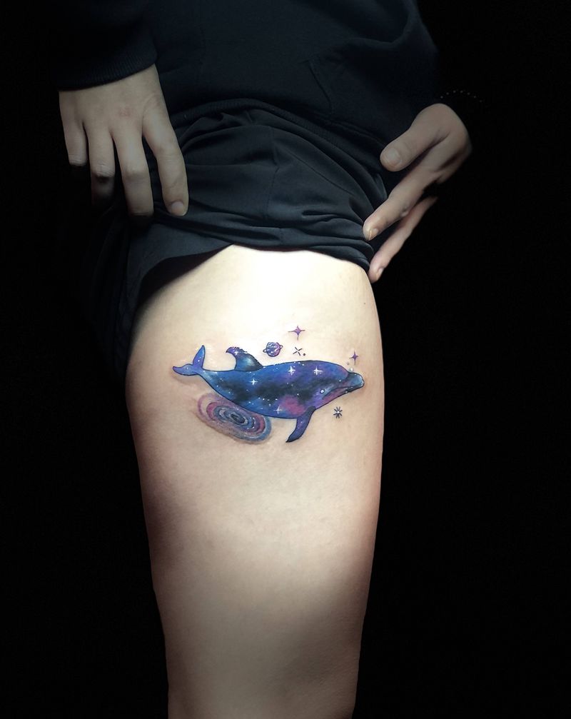 • T网红王老大花腿龙纹身图片_腿部新传统纹身图案