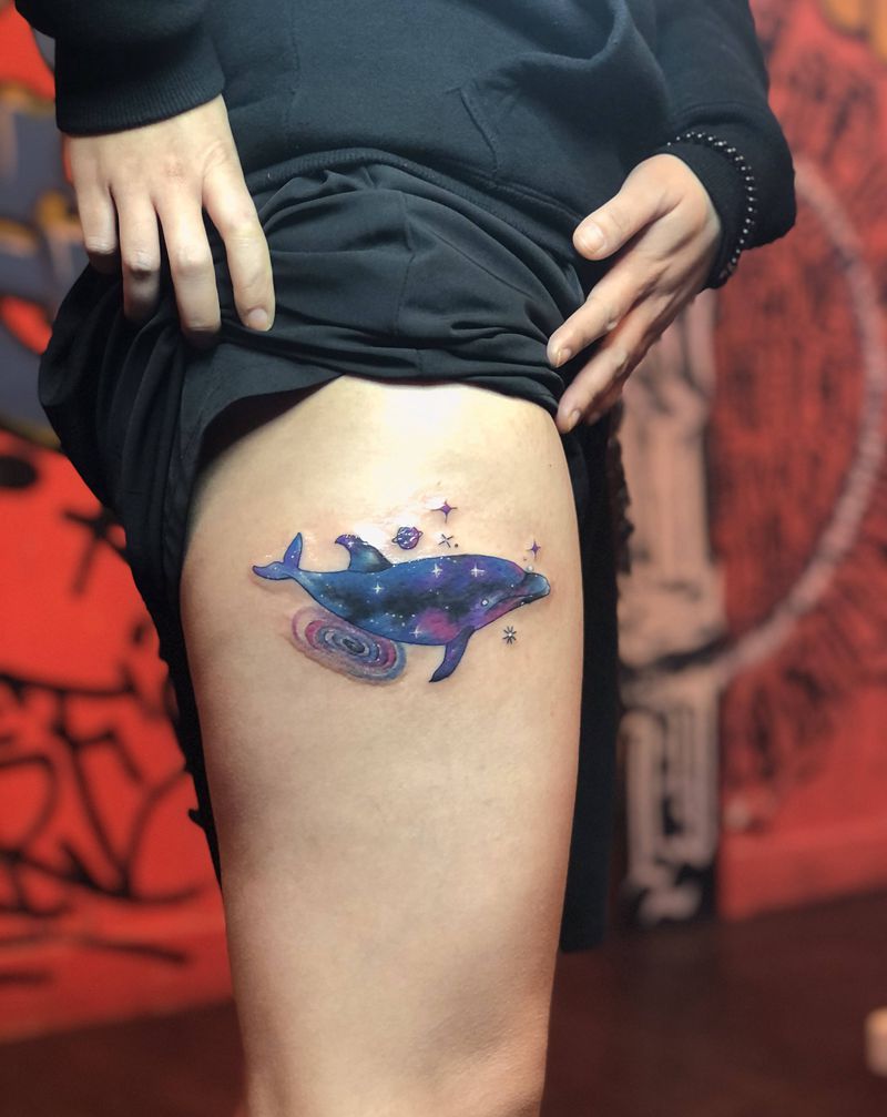 • T网红王老大花腿龙纹身图片_腿部新传统纹身图案