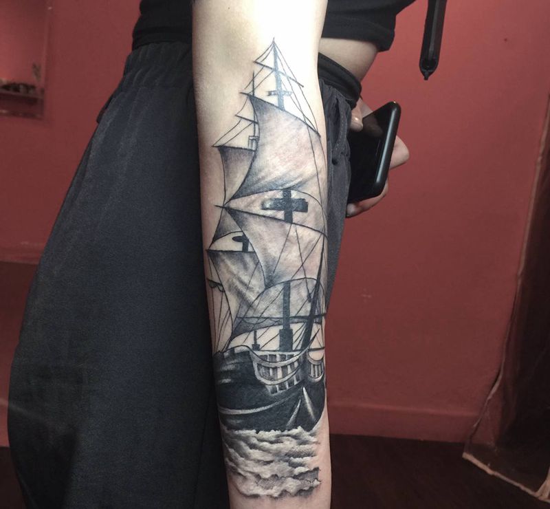 当前位置: 首页 >广东省肇庆市纹身店-黑兔刺青纹身馆纹身图案>帆船纹身图片_手臂纹身图案