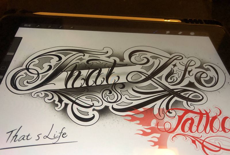 当前位置: 首页 >广东省肇庆市纹身店-黑兔刺青纹身馆纹身图案>that s life纹身图片_花体字纹身图案
