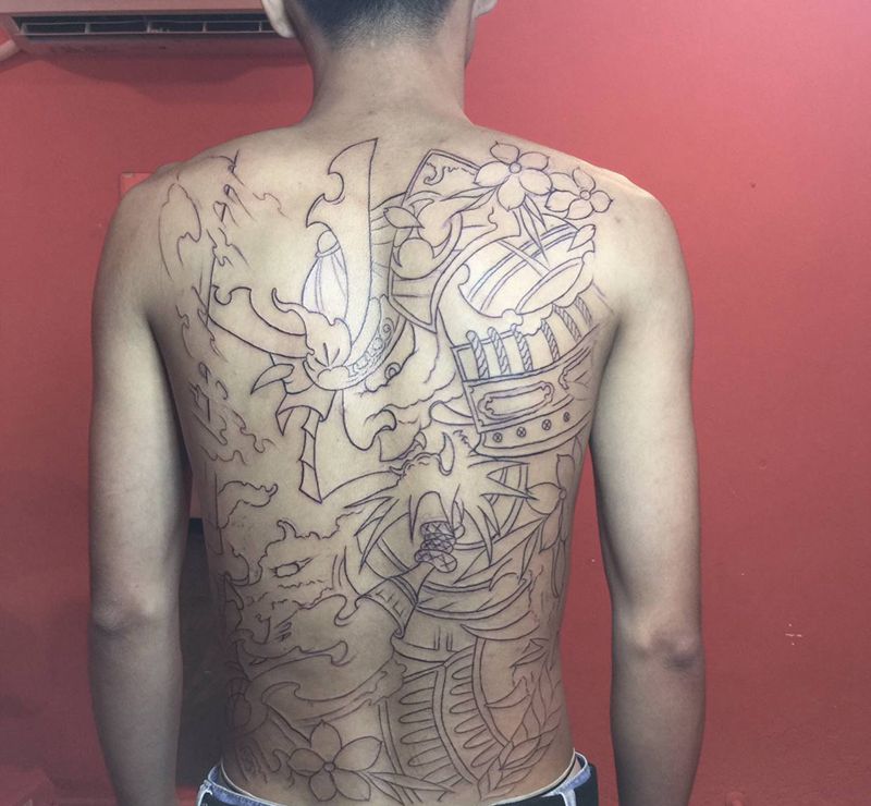 当前位置: 首页 >广东省肇庆市纹身店-黑兔刺青纹身馆纹身图案>武士纹身图片_背部新传统纹身图案