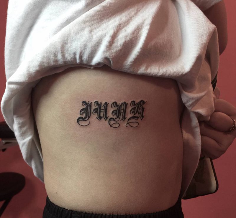 • T关于私处得爱!纹身图片_成品腹部清新字符图腾纹身图案
