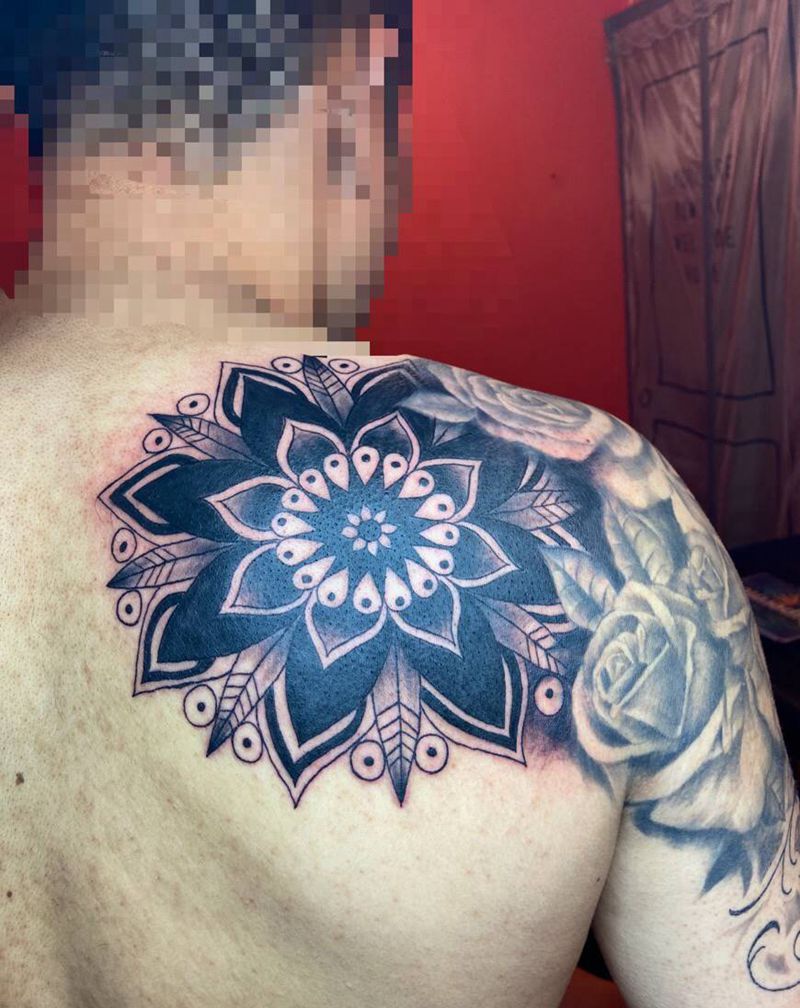• 纹身吧推荐的披肩图腾半胛纹身图案作品展示