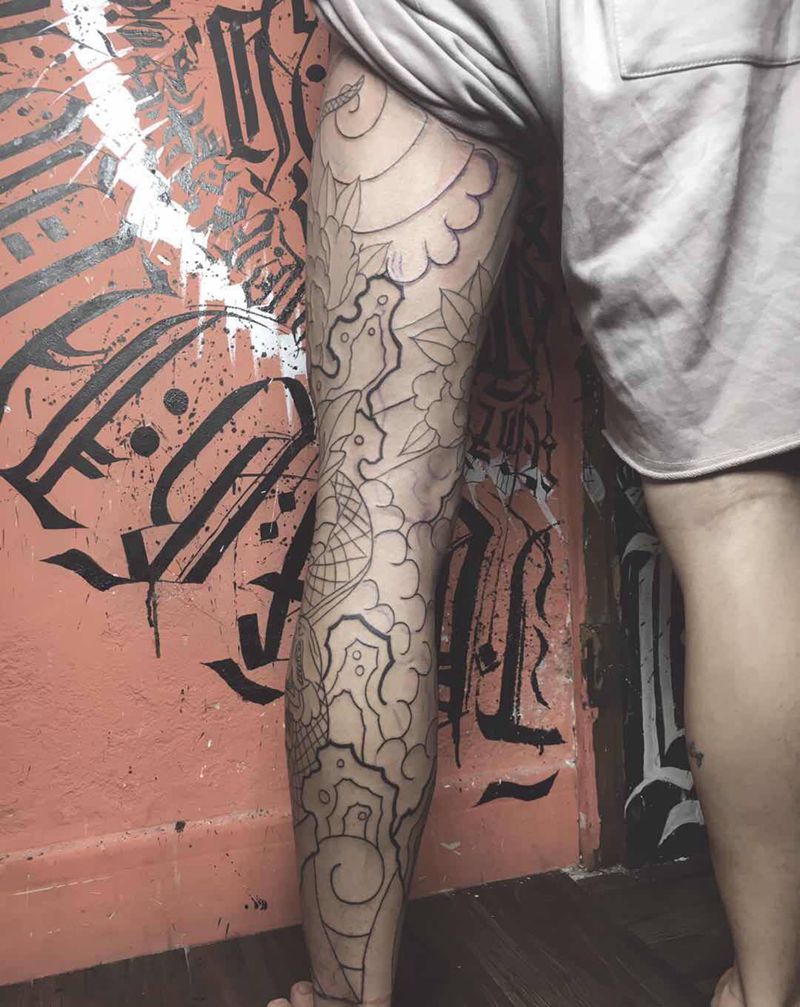 • T网红王老大花腿龙纹身图片_腿部新传统纹身图案