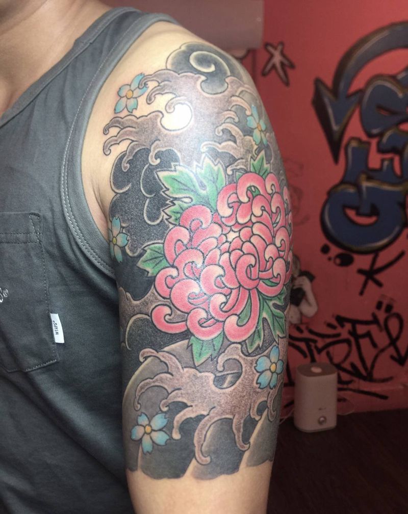 • 女性大花胸纹身_43张霸气漂亮的女性大花胸纹身图案作品