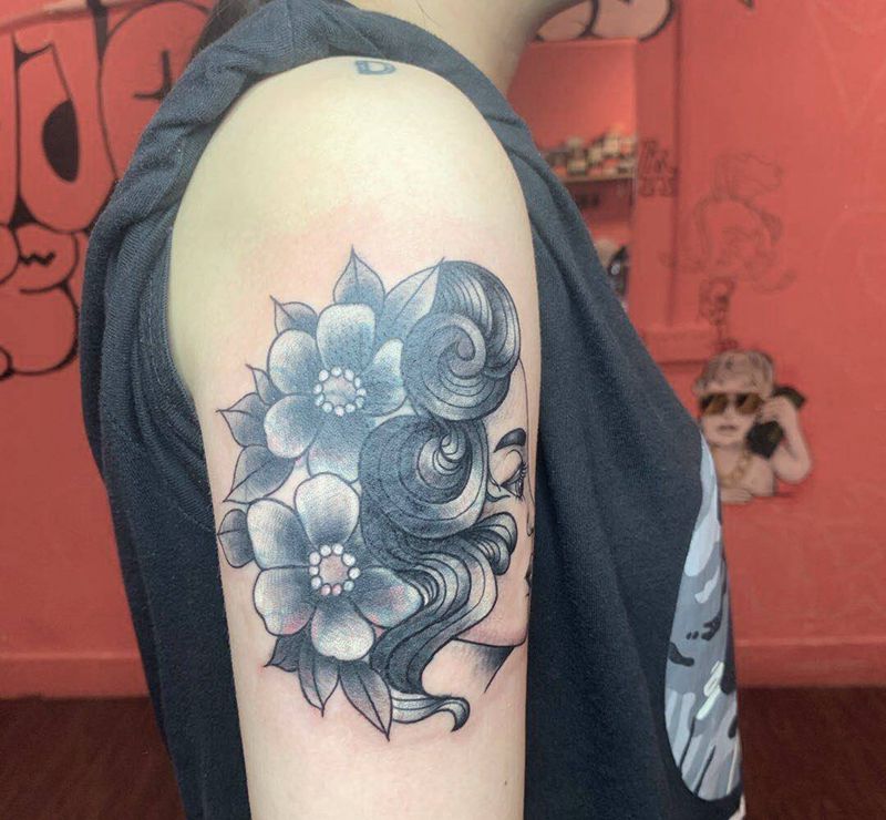 • 女性大花胸纹身_43张霸气漂亮的女性大花胸纹身图案作品