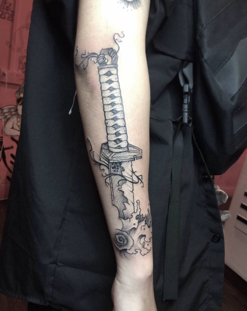 当前位置: 首页 >广东省肇庆市纹身店-黑兔刺青纹身馆纹身图案>武士刀纹身图片_手臂纹身图案
