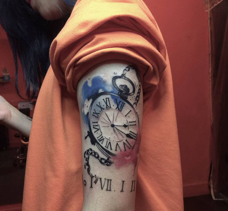 当前位置: 首页 >广东省肇庆市纹身店-黑兔刺青纹身馆纹身图案>时钟纹身图片_手臂水墨纹身图案