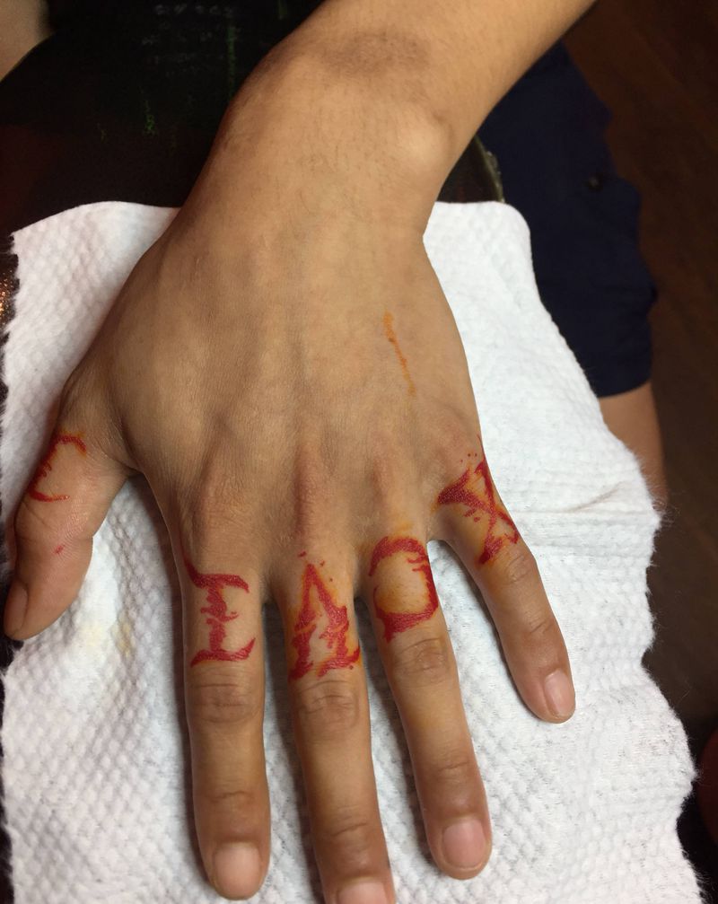 • 手背潮流时尚的玫瑰花眼睛纹身图案