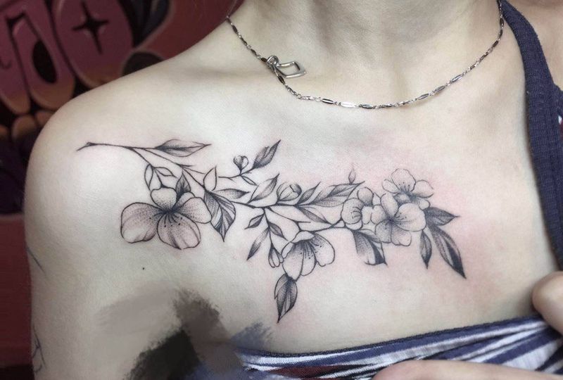 • 女性大花胸纹身_43张霸气漂亮的女性大花胸纹身图案作品
