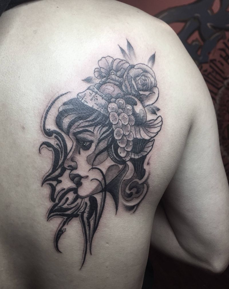 • 纹身吧推荐的披肩图腾半胛纹身图案作品展示