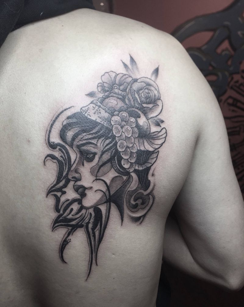 • 纹身吧推荐的披肩图腾半胛纹身图案作品展示
