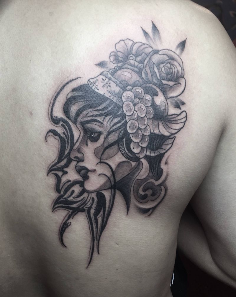 • 纹身吧推荐的披肩图腾半胛纹身图案作品展示