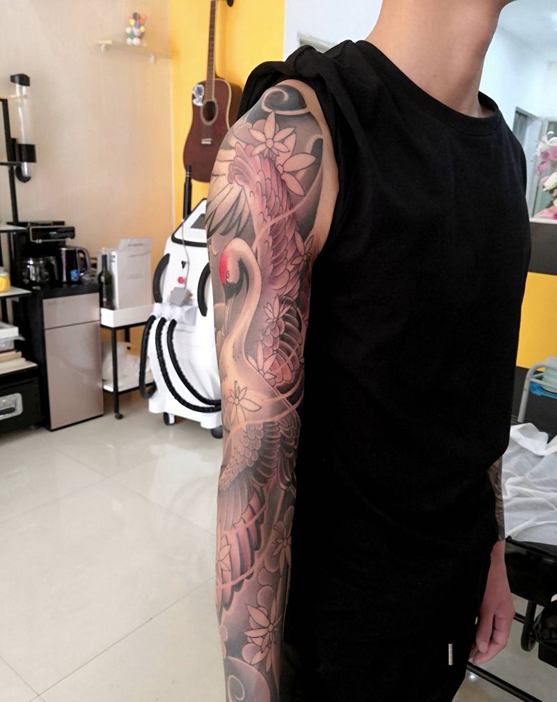 当前位置: 首页 >广东省惠州市纹身店-小扯刺青纹身图案>仙鹤纹身图片_手臂纹身图案