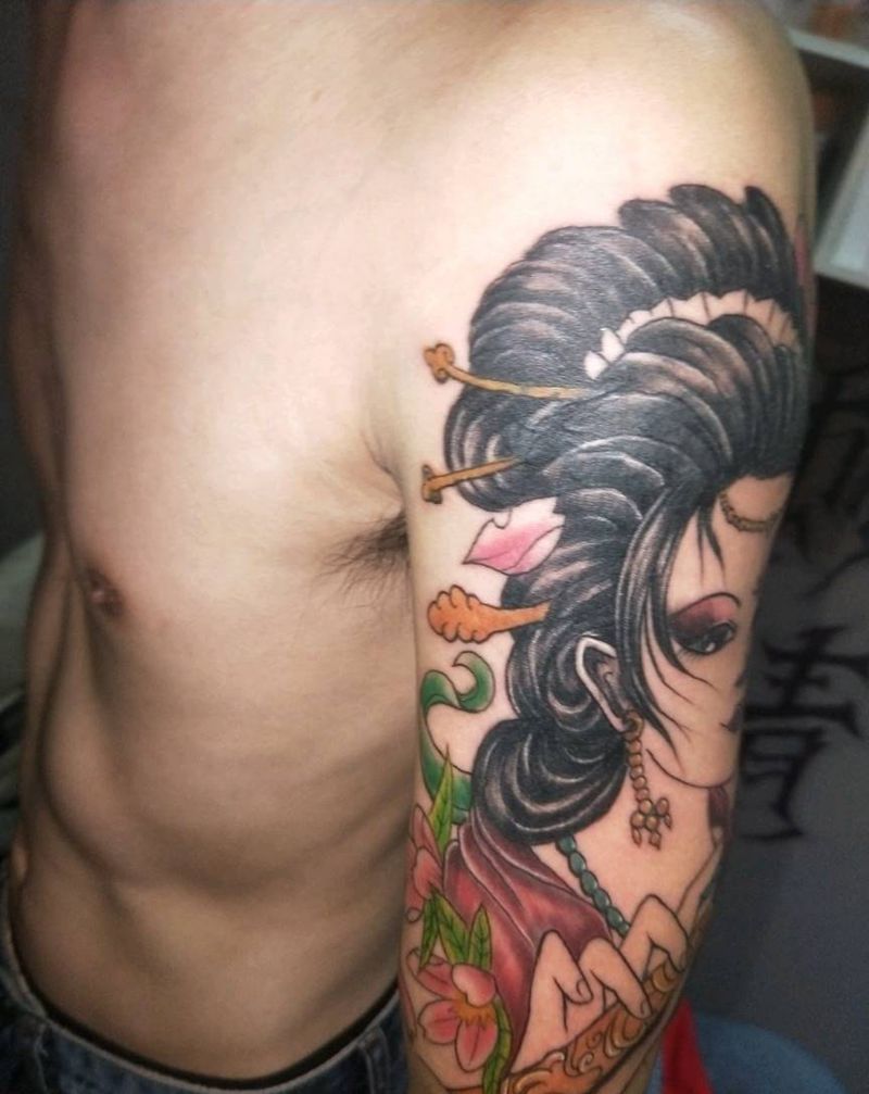 • 女性大花胸纹身_43张霸气漂亮的女性大花胸纹身图案作品