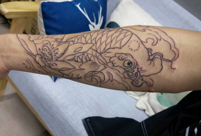 当前位置: 首页 >广东省惠州市纹身店-小扯刺青纹身图案>鲤鱼线条完成。下次上色。纹身图片