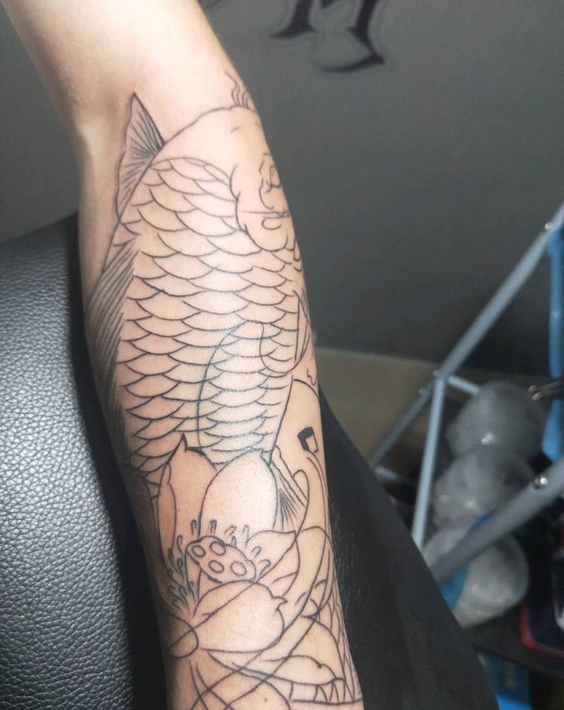 鲤鱼线条。下次上色。纹身图片