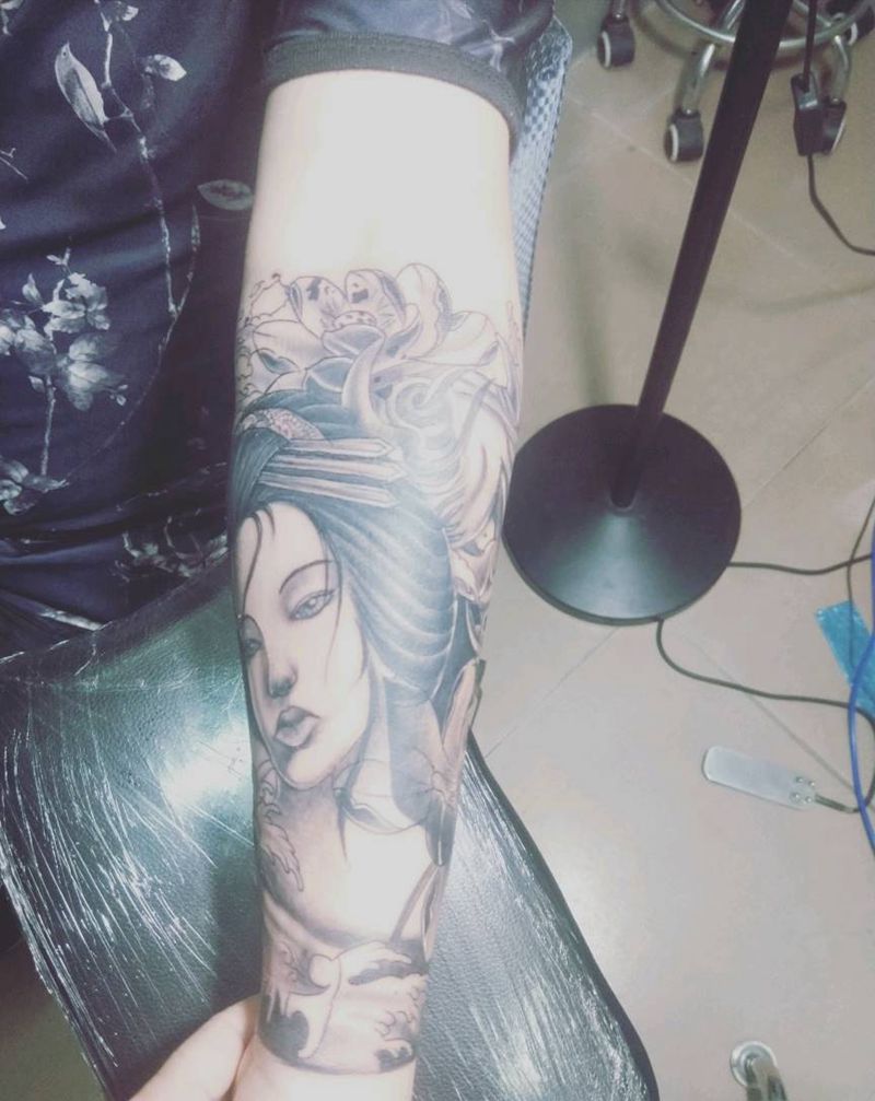 当前位置: 首页 >广东省惠州市纹身店-小扯刺青纹身图案>艺妓半臂。纹身图片