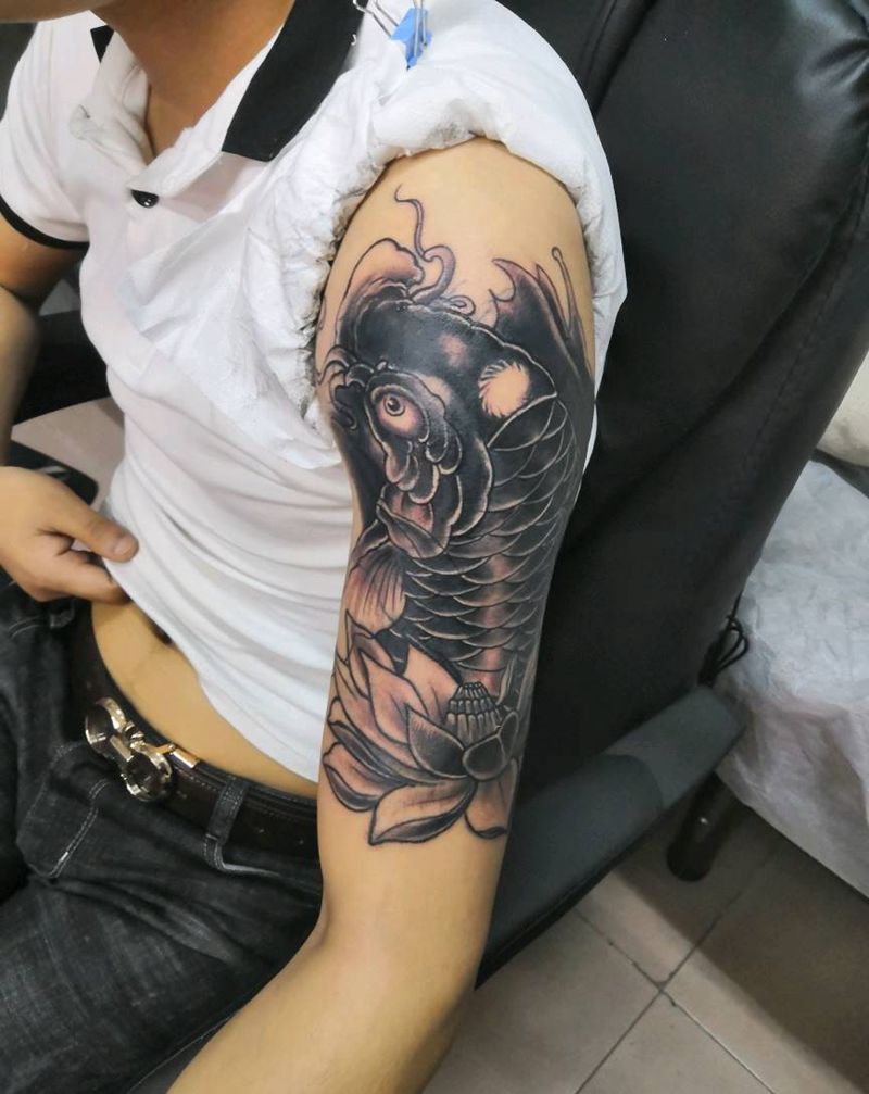 当前位置: 首页 >广东省惠州市纹身店-小扯刺青纹身图案>鲤鱼盖图。纹身图片