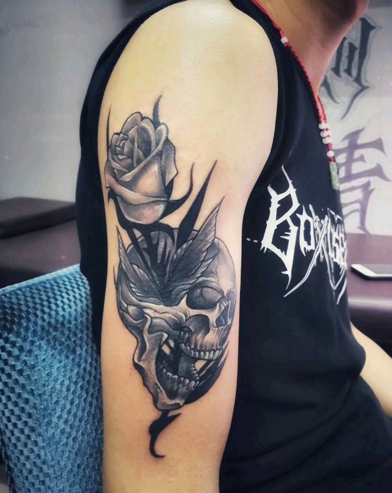 当前位置: 首页 >广东省惠州市纹身店-小扯刺青纹身图案>骷髅玫瑰。纹身图片