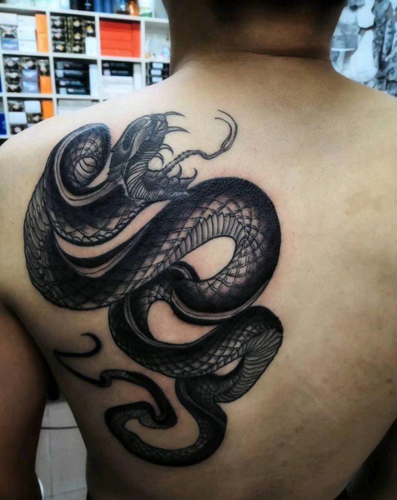蛇上色完成。纹身图片